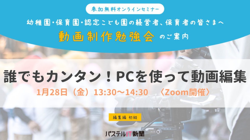 【終了】1月28日(金)開催!園のための動画制作勉強会 編集編初級『誰でもカンタン!パソコンを使って動画編集』