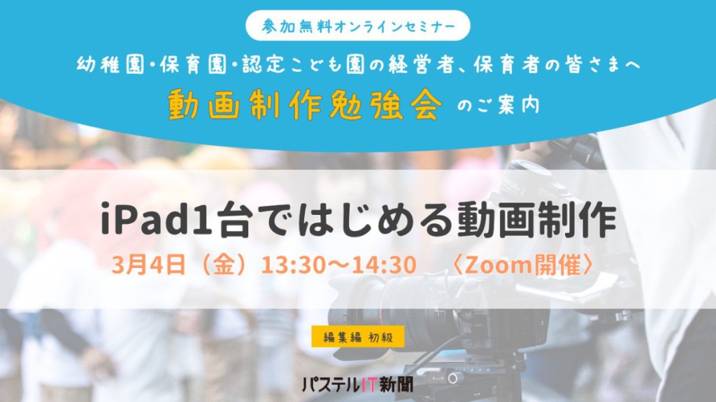 【終了】3月4日(金)開催!園のための動画制作勉強会 撮影・編集編初級『iPad1台ではじめる動画制作』